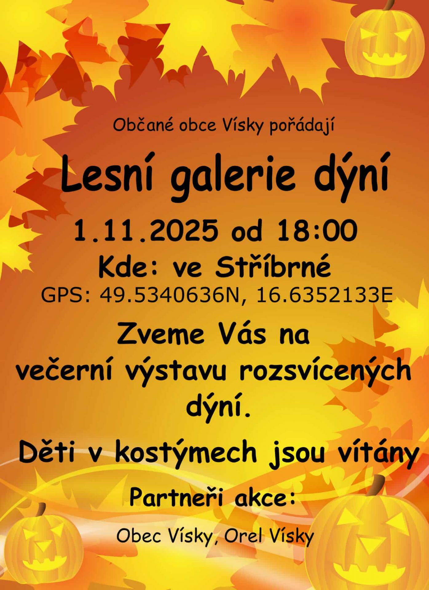 31.10. od 16 hodin v Orlovně - Tvořivá dílna 1.11. od 18 hodin ve stříbrné - Lesní galerie dýní